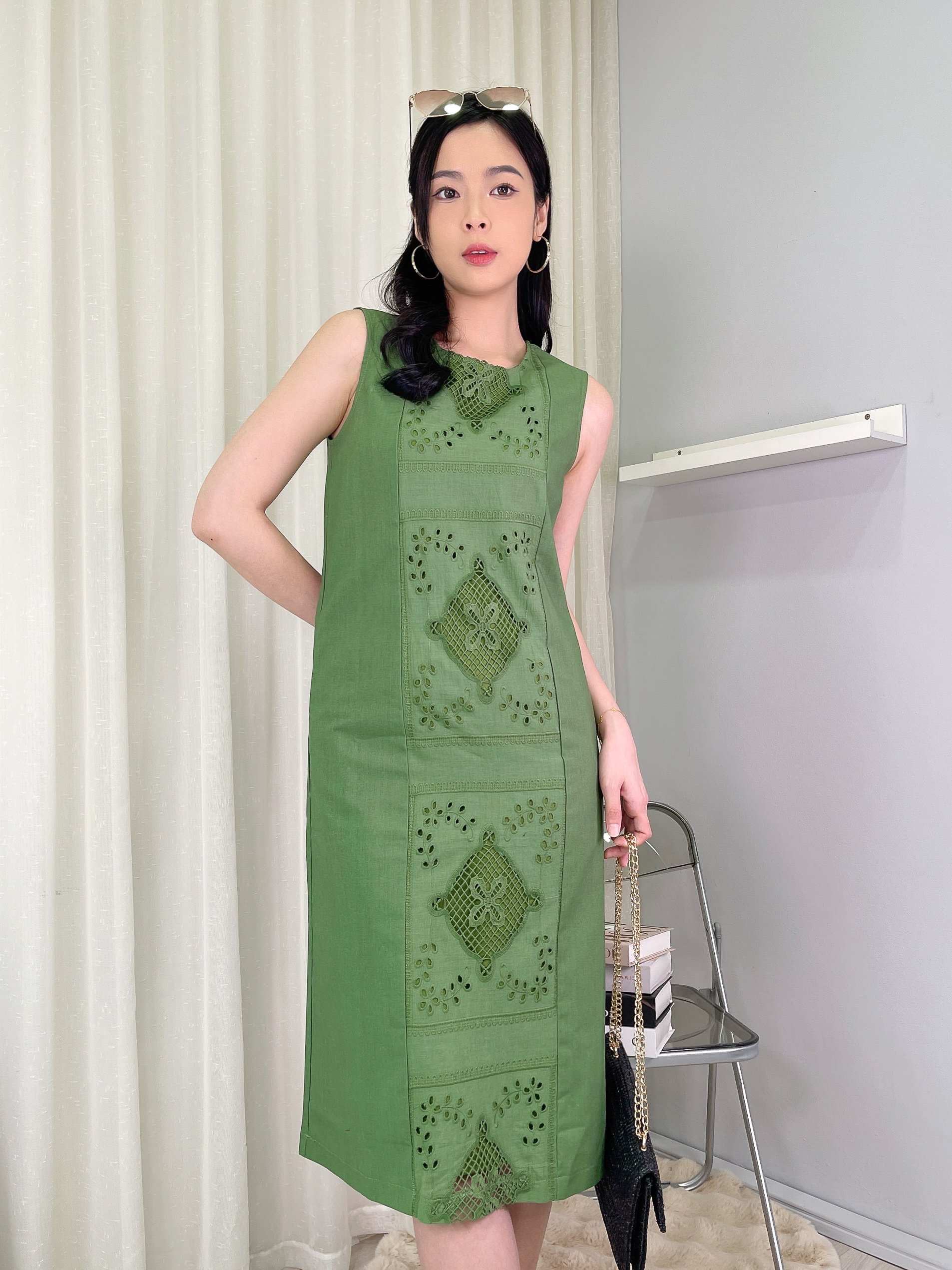 1722BD Sleeveless Dress with Lace Panel Detailing