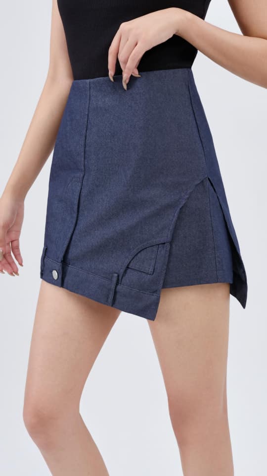Featuring a tailored high-waist fit with an asymmetrical overlay, this piece offers the polished look of a skirt with the security of inner shorts. The clean structure smooths the waistline while the subtle flare allows comfortable movement—no pulling, no restriction.