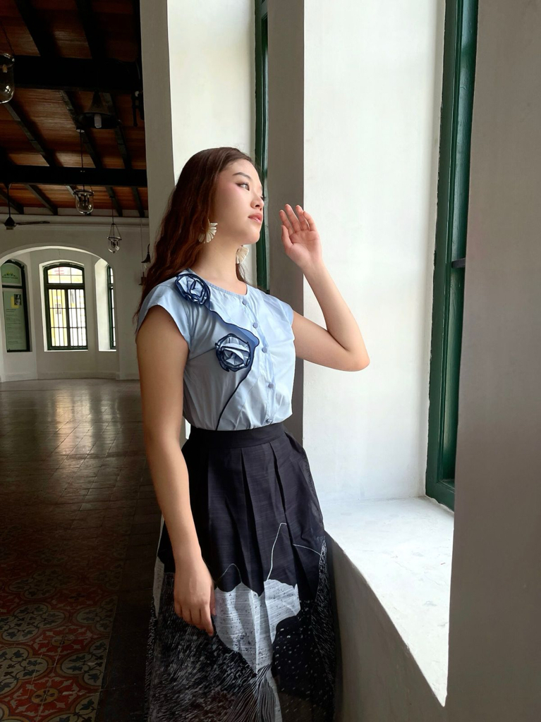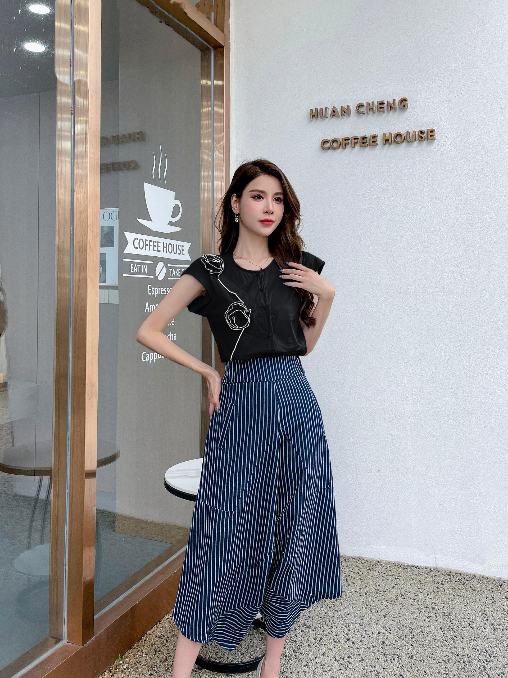 This top features delicate rose embellishments, adding a touch of romance to your overall look. Crafted from soft fabric with a refined cut, it offers both comfort and a sophisticated silhouette.