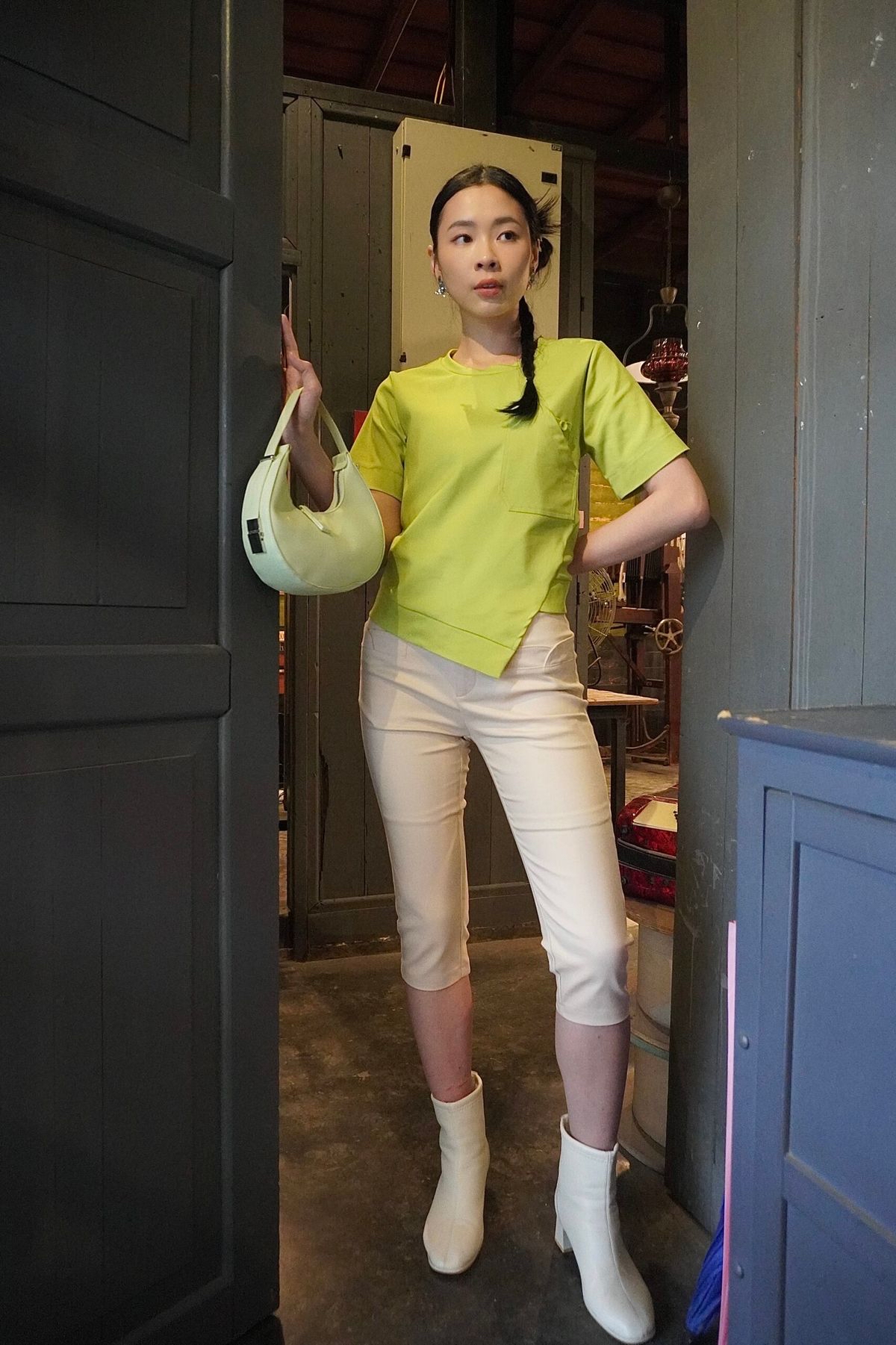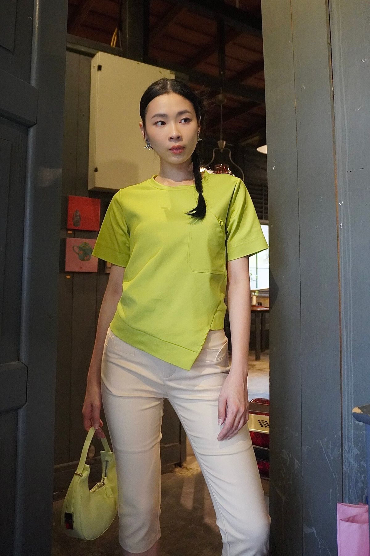 This asymmetrical top redefines elegance with its unique, contemporary cut, blending fashion-forward design with an artistic edge. The fluid lines and distinctive structure add movement and depth to your outfit, effortlessly showcasing your individuality.