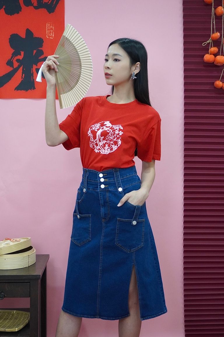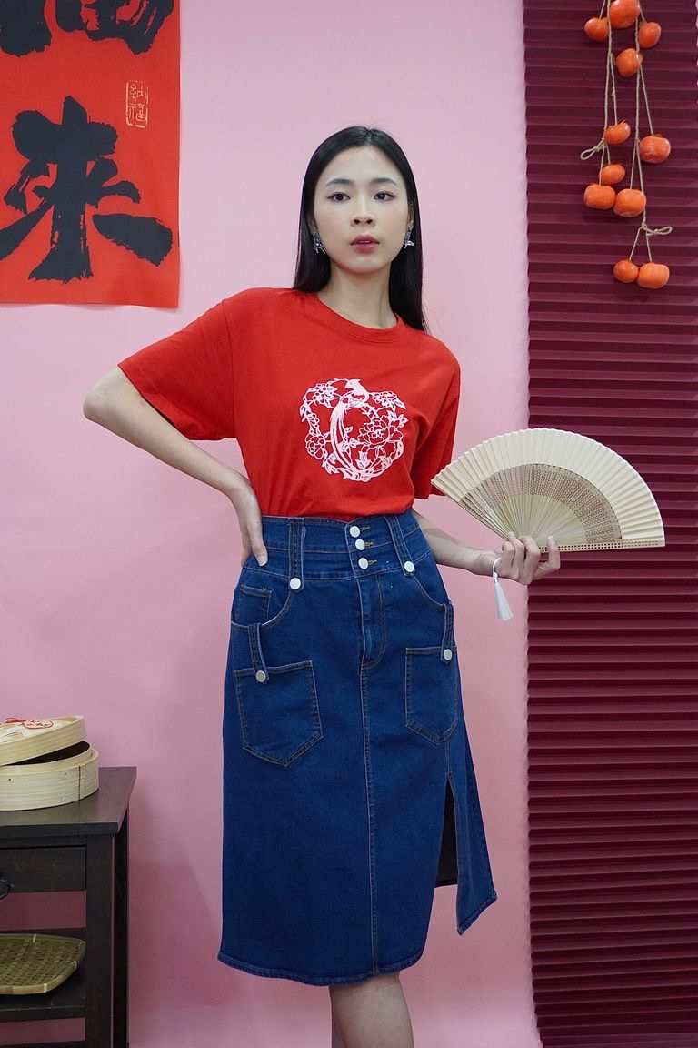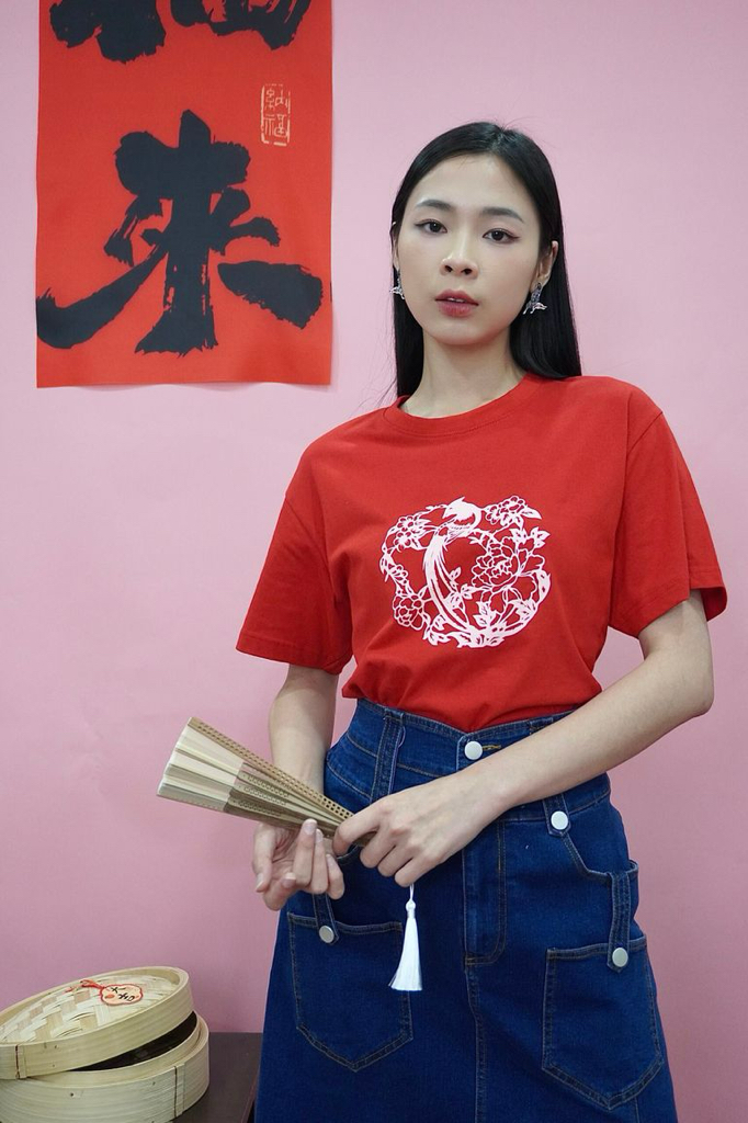 This vibrant red T-shirt is crafted from soft, breathable fabric and adorned with a symbolic phoenix and floral papercut design, blending tradition with modern style. Perfect for Lunar New Year festivities or everyday wear, it’s the ultimate versatile piece to bring blessings and joy to your festive wardrobe!