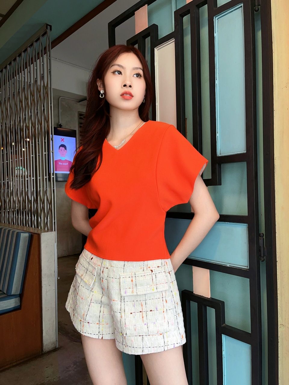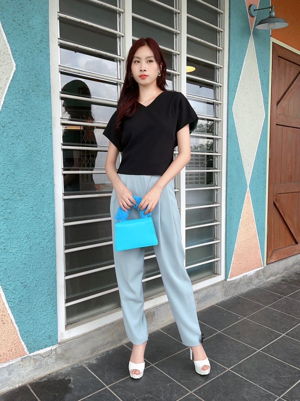 The V-Neck Basic Top features a clean neckline that flatters the collarbone, bringing a touch of elegance to your look. Crafted from lightweight, comfortable fabric, its minimalist cut makes it versatile and easy to style with pants or skirts, perfect for both workdays and casual outings.