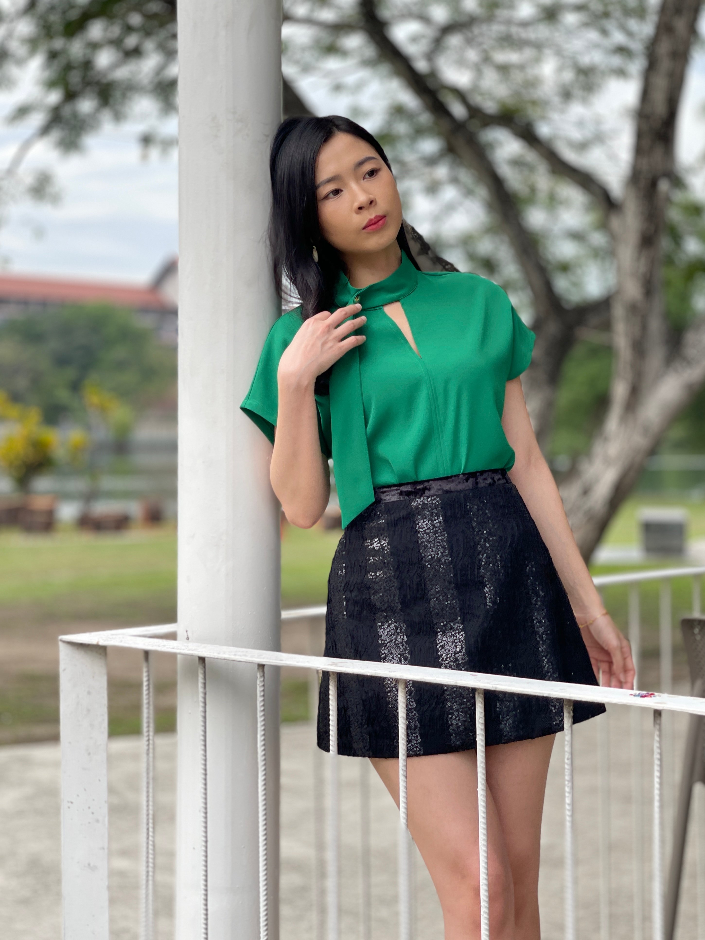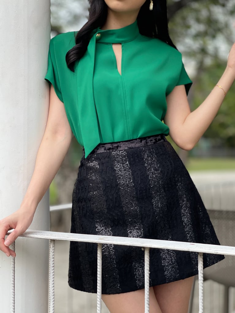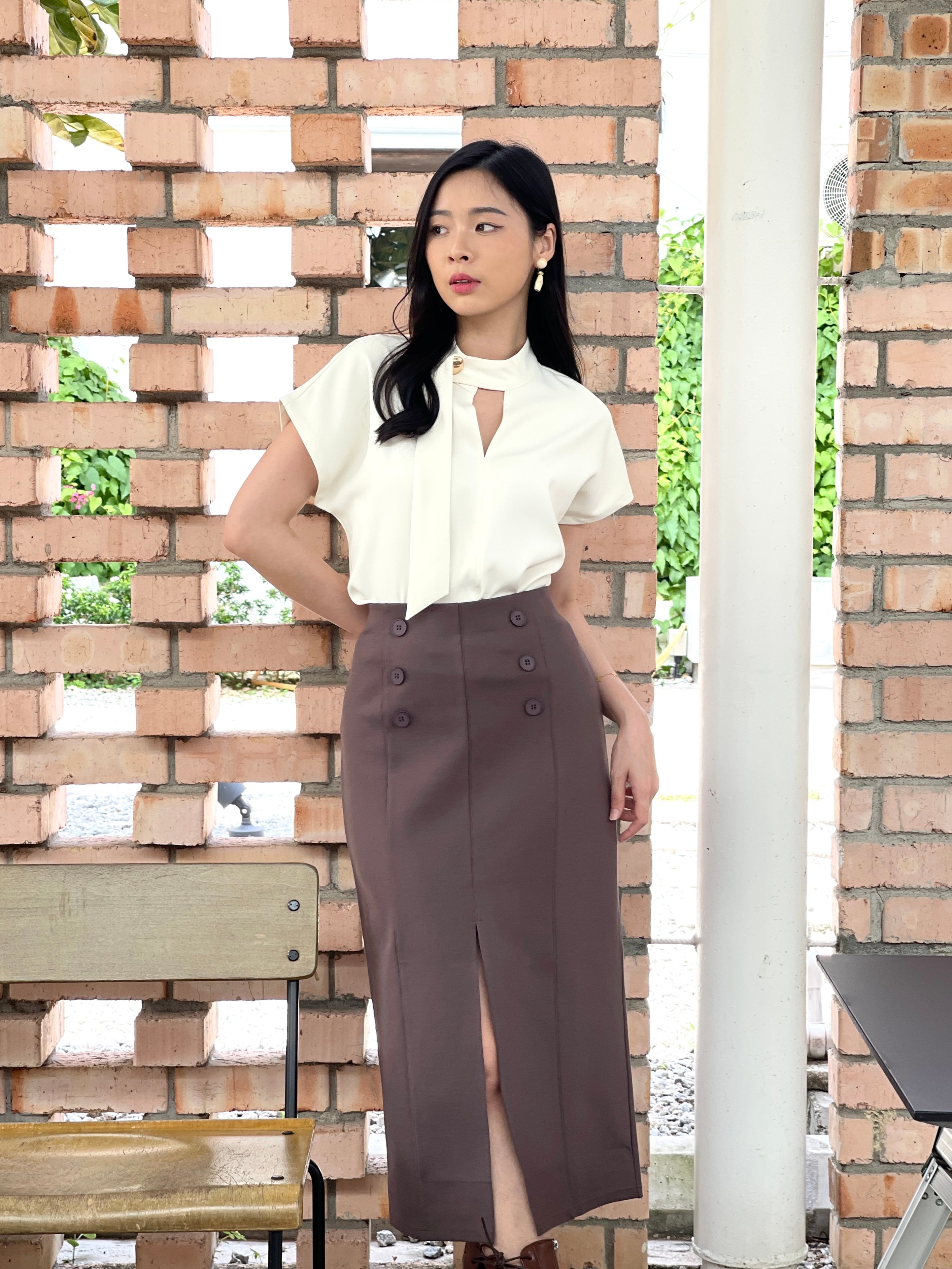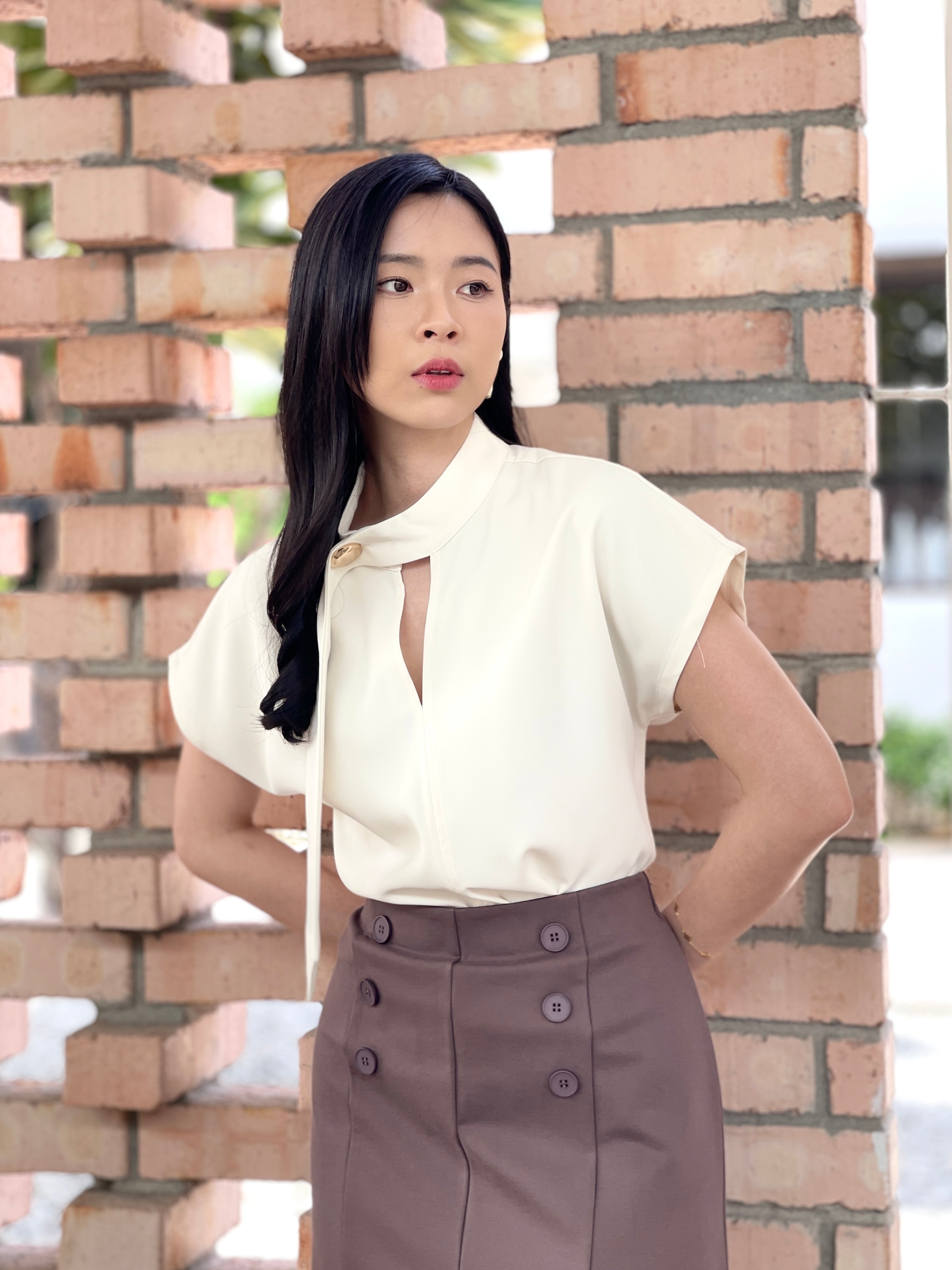 Effortless elegance meets modern sophistication. This satin-finish blouse features a soft draped knot-neck design with a statement button detail, adding a touch of chic femininity to your daily look. The flowy fabric glides smoothly on the skin, while its structured silhouette flatters the upper body for a clean, graceful profile. Perfect for both work and weekend gatherings — pair it with tailored trousers or a sleek skirt for a timeless polished look.