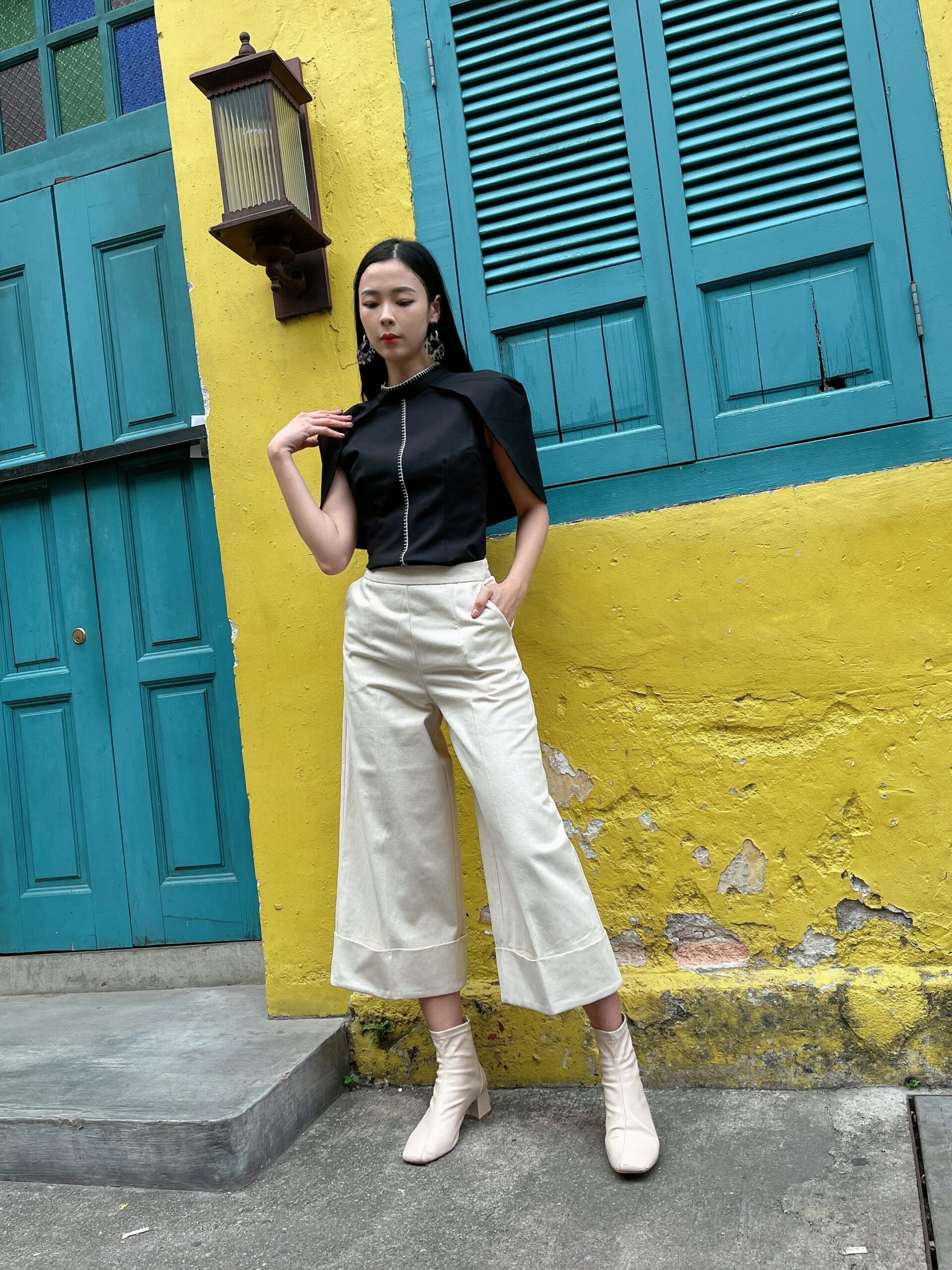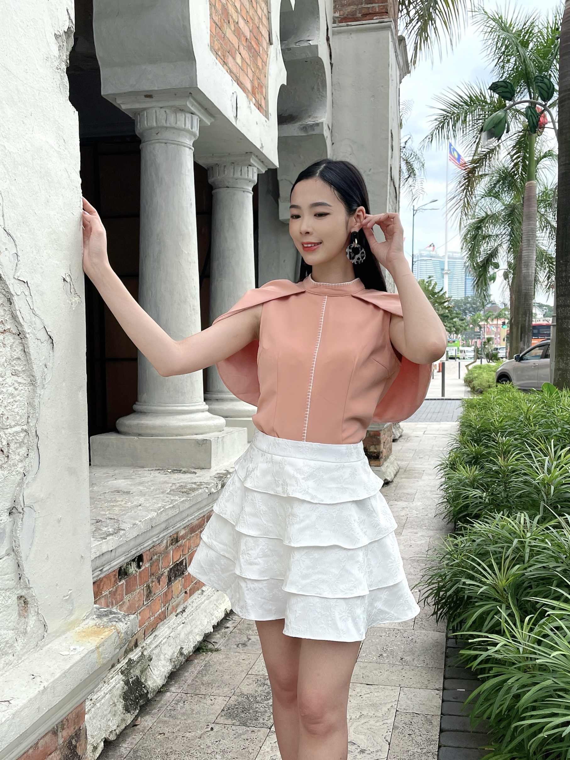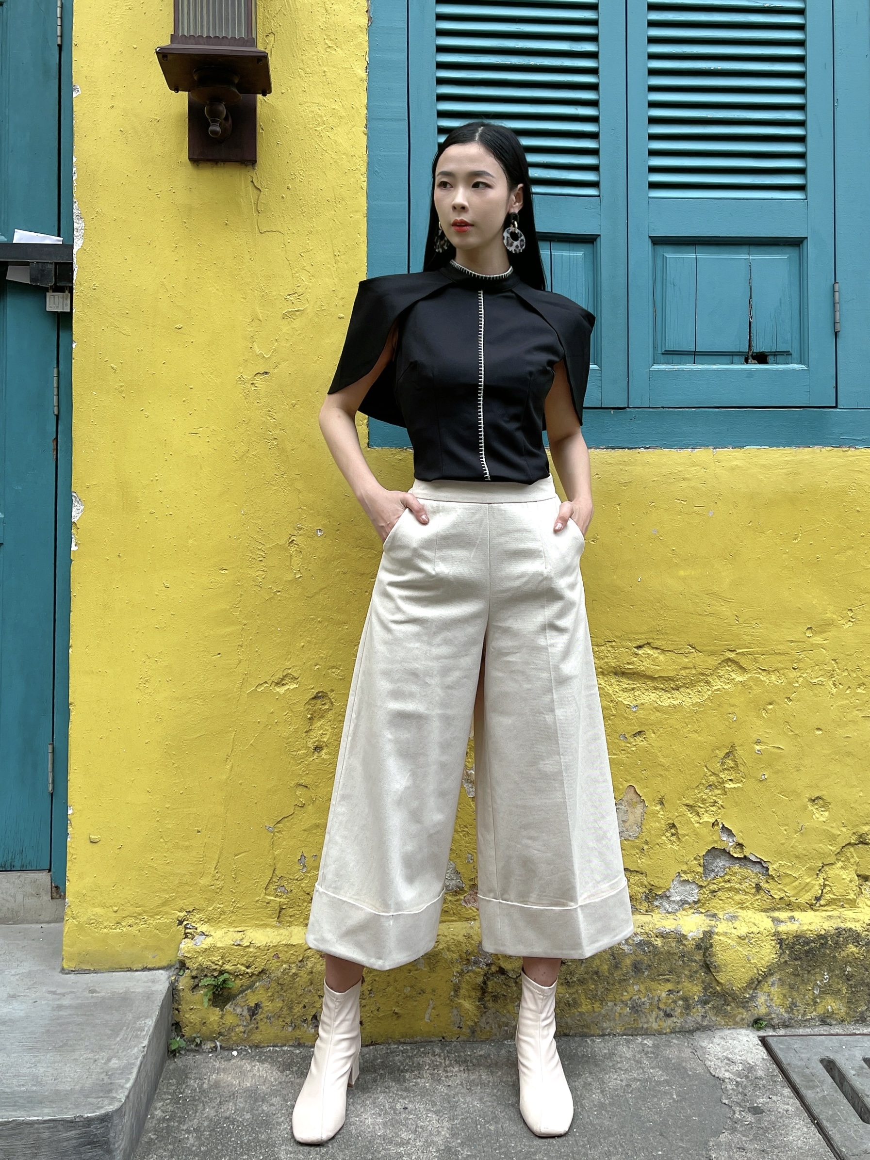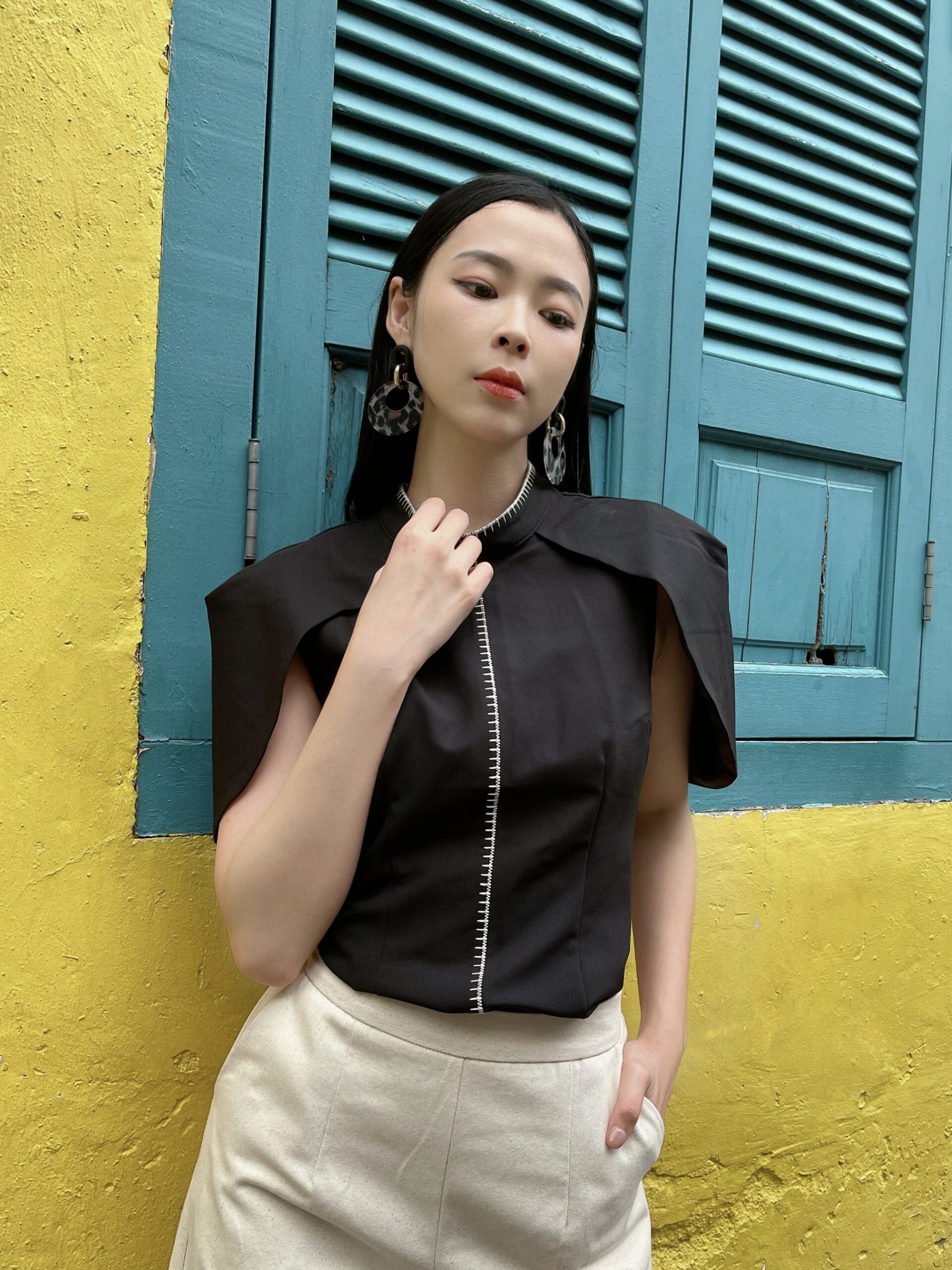 The structured shoulders give this top a bold, architectural feel, providing a striking silhouette that exudes confidence and style.