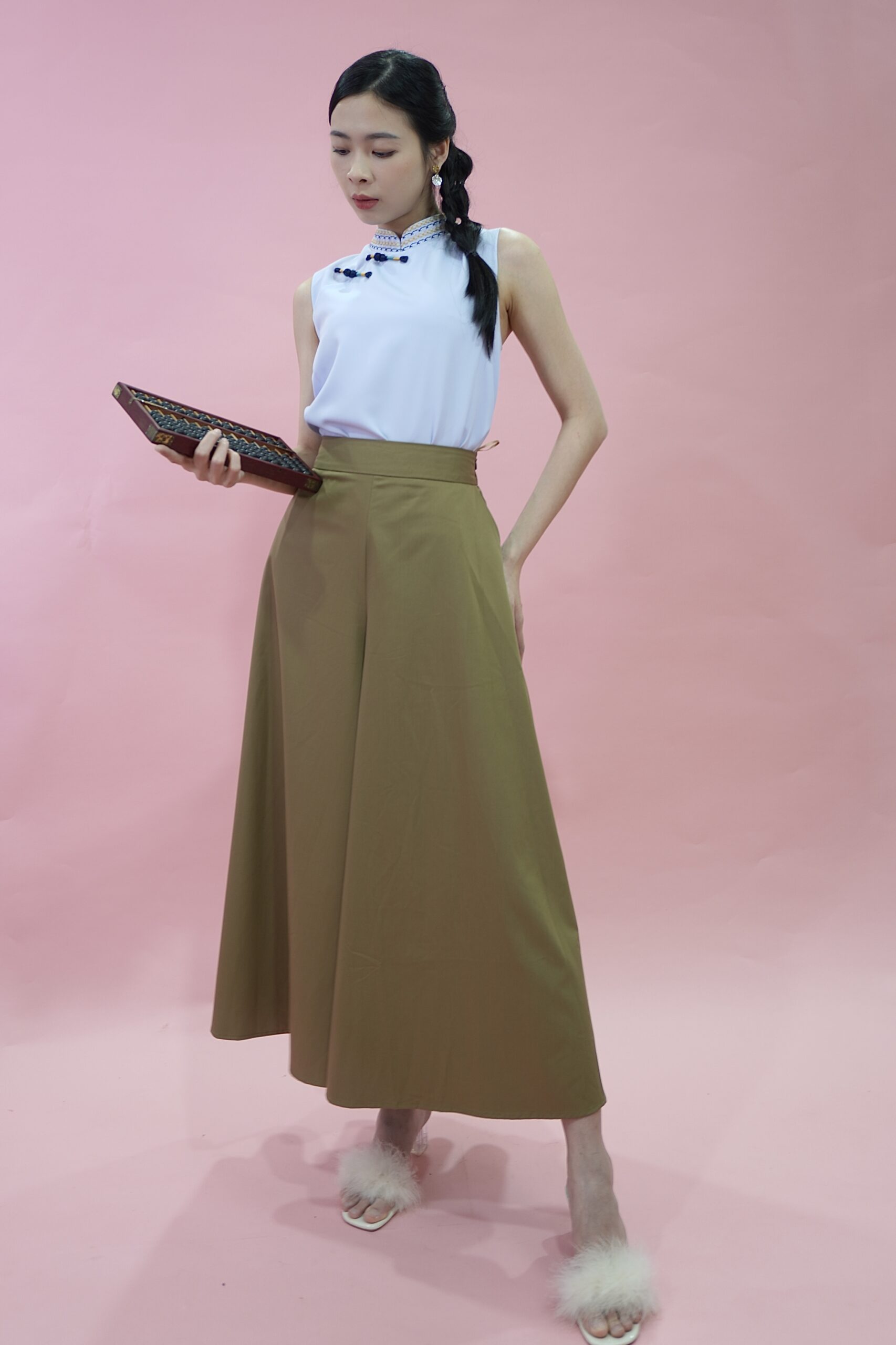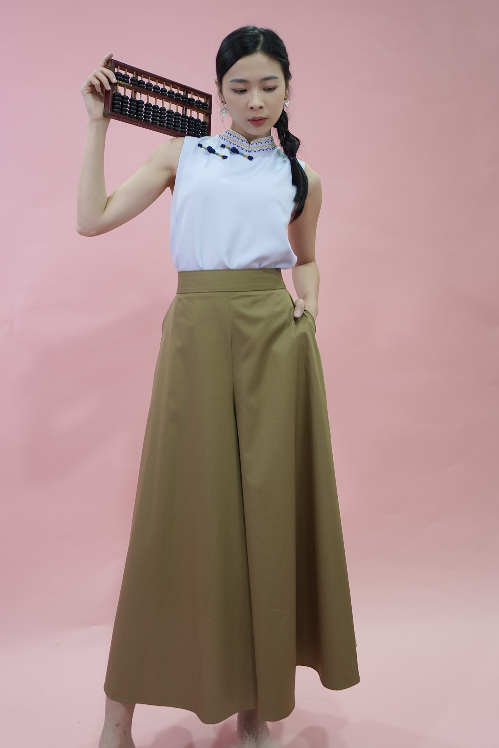 The mandarin collar and delicate button details of this qipao top offer a nod to timeless beauty while embracing contemporary sophistication.