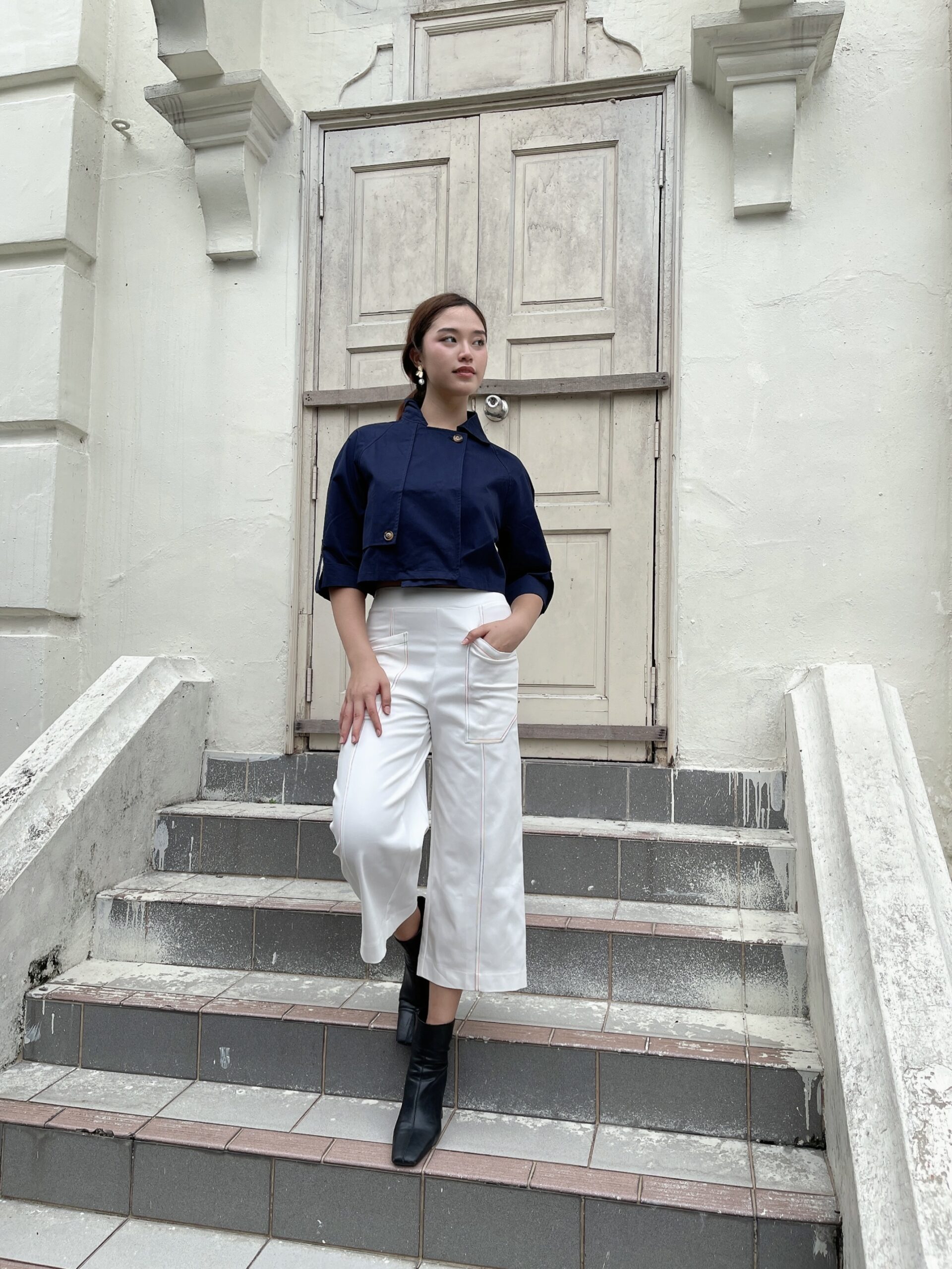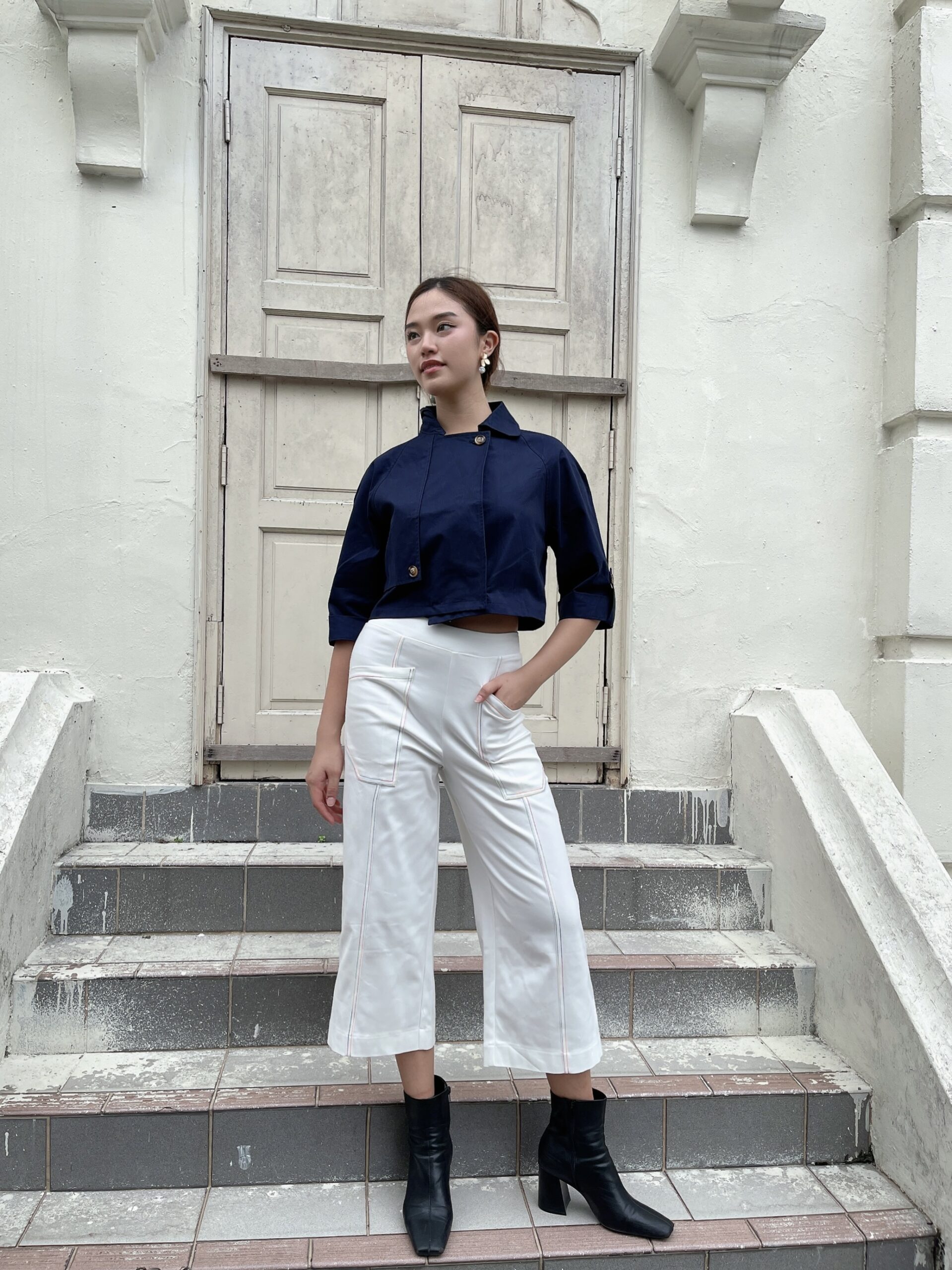 These suiting fabric wide-leg trousers offer sharp tailoring with a relaxed feel, perfect for exuding confidence and elegance in any setting.