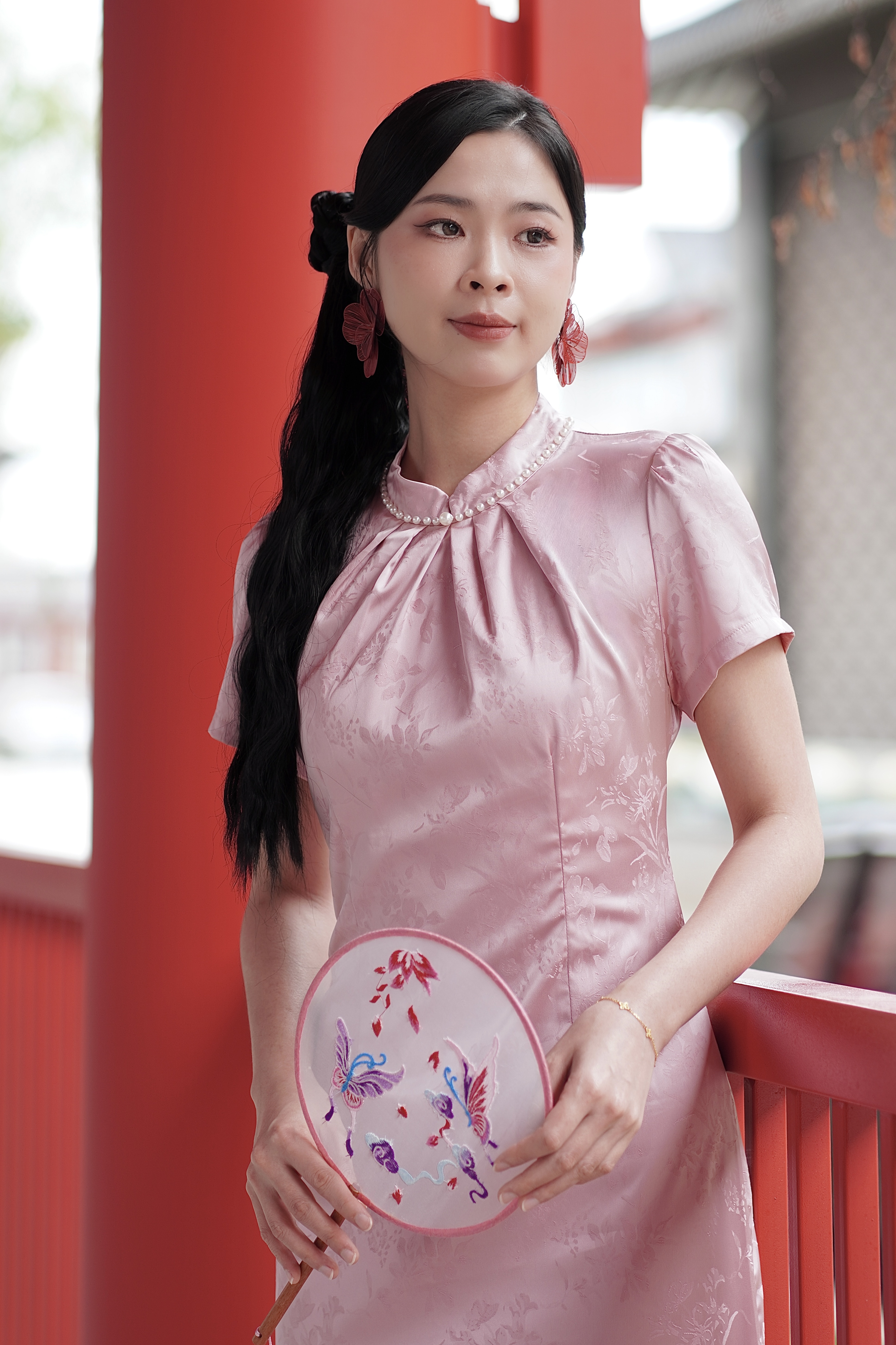 Step into timeless elegance with our Blossom Sheen Mandarin Qipao Dress. Crafted from soft jacquard satin with a subtle floral sheen, this dress brings out the gentle glow of femininity while keeping the classic silhouette of traditional qipao charm.
