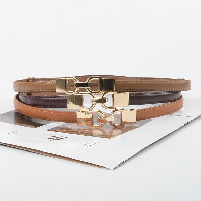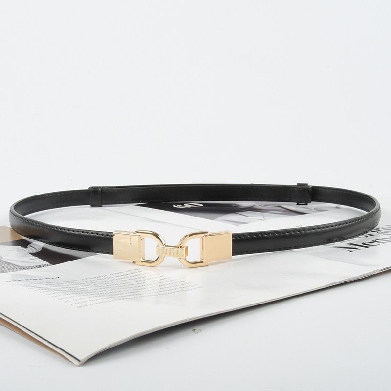 The Livia Elegance Slim Buckle Belt features a minimalist design with a double-square gold buckle and stretchable leather for a comfortable, secure fit. Perfect for elevating dresses, blazers, or tops, this belt subtly defines the waist and adds a refined finishing touch to any outfit. Easy to wear, effortlessly stylish, and versatile for everyday elegance.