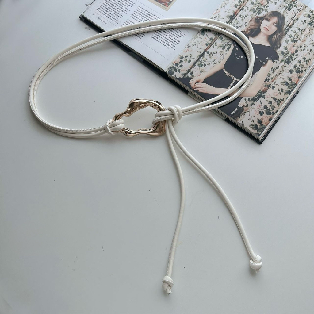 Modern, minimal, and bold—the Sculpt Loop Belt features an abstract gold buckle paired with clean faux leather cords. Instantly elevates any look with effortless edge.