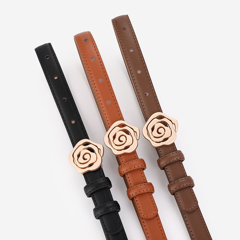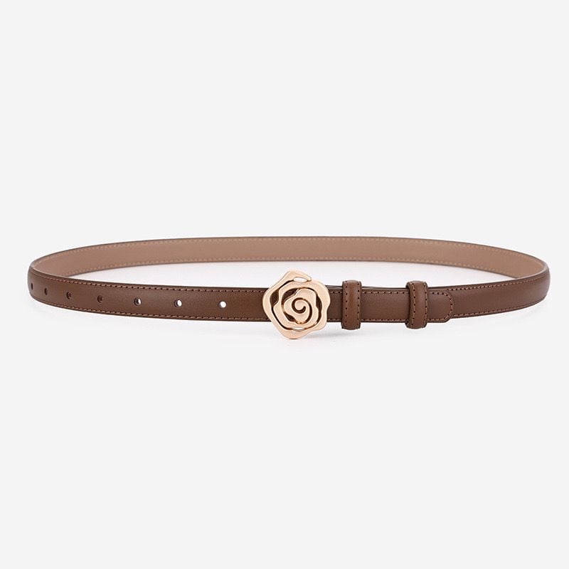 A delicate rose for your waistline. The Rose Bloom Belt features a sculpted floral buckle in rose gold, paired with a sleek leather strap. Feminine yet polished—perfect for dresses, high-waist bottoms, or a soft statement over knits.