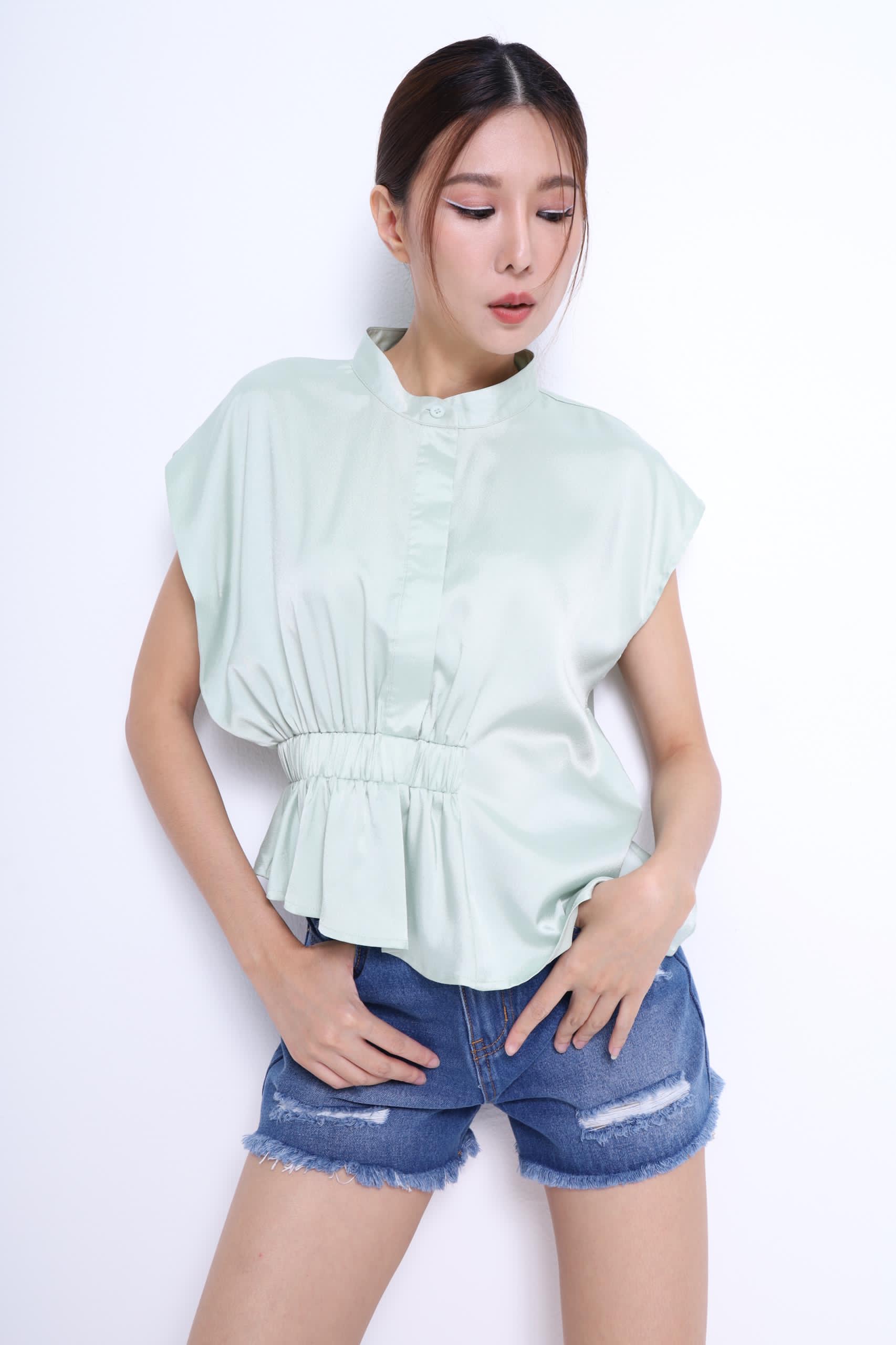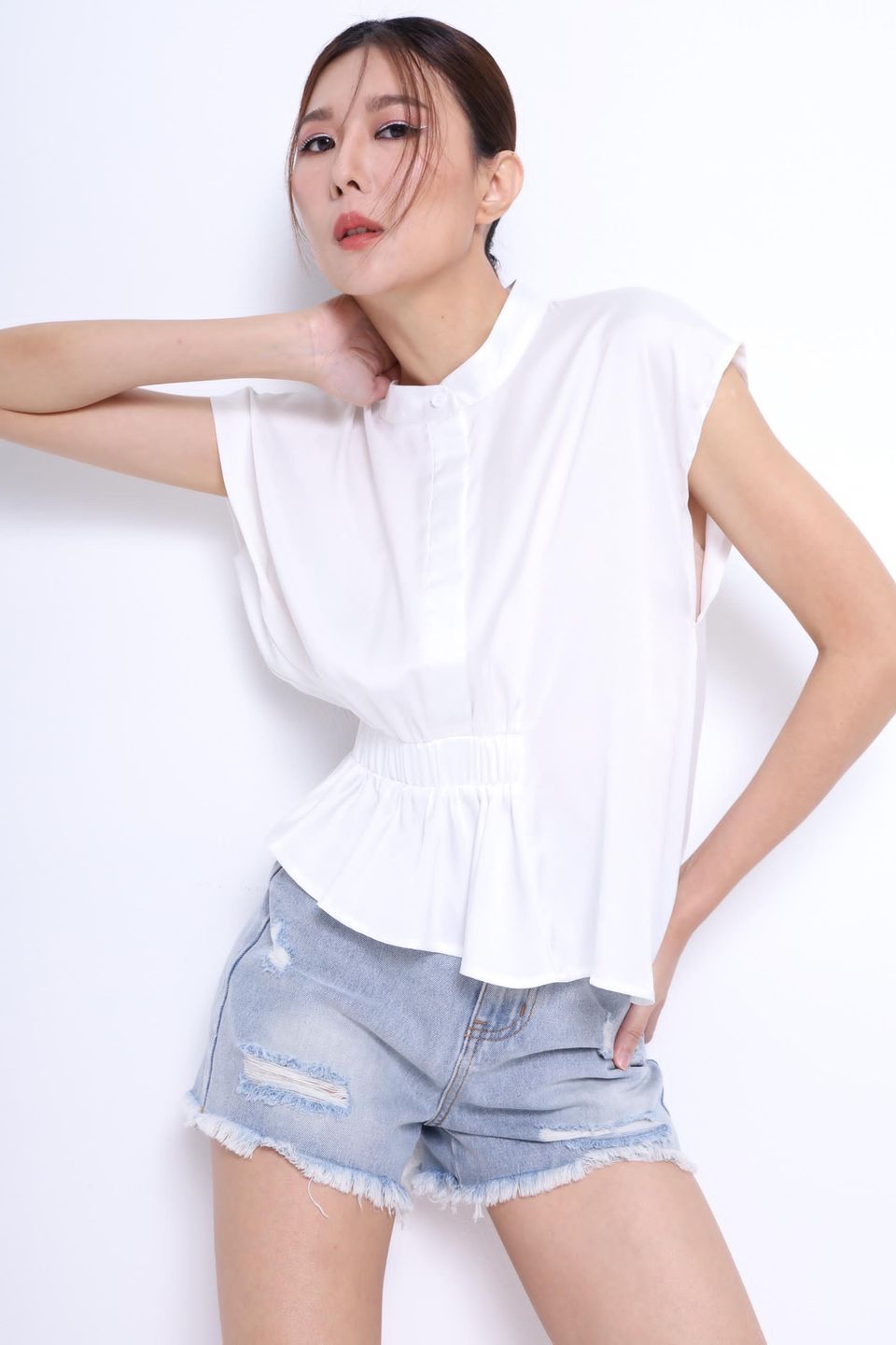 The Pleated Hem Sleeveless Shirt is crafted from lightweight fabric with a minimalist stand collar and relaxed fit for ultimate comfort. The pleated hem detail adds a touch of volume and style, creating a flattering silhouette. Perfect to pair with denim or shorts, this versatile top is your go-to piece for effortless chic everyday looks.