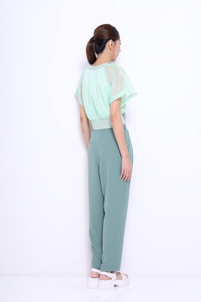 The Sheer Sleeve Contrast Top features chic see-through sleeves that add a stylish touch while keeping the look breathable and flattering. With its soft tones and clean silhouette, this piece brings a refreshing elegance to your wardrobe. Perfect for pairing with casual pants or skirts, it’s ideal for both daily wear and casual gatherings.