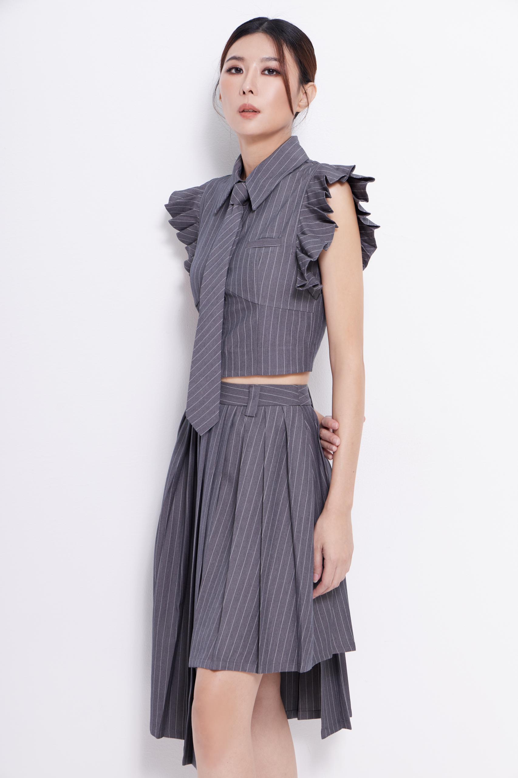 The Ruffle Sleeve Shirt Top features delicate ruffle details along the shoulders, beautifully balancing and flattering the arms while adding a touch of femininity. Designed with a structured shirt collar and clean silhouette, it exudes sophistication and elegance. Pair it with skirts or tailored pants for a polished office look or a chic casual outfit.