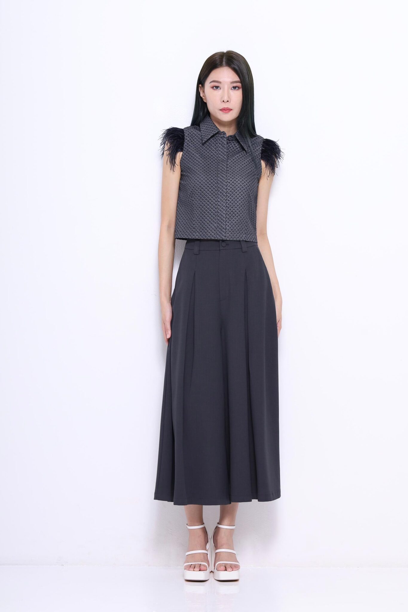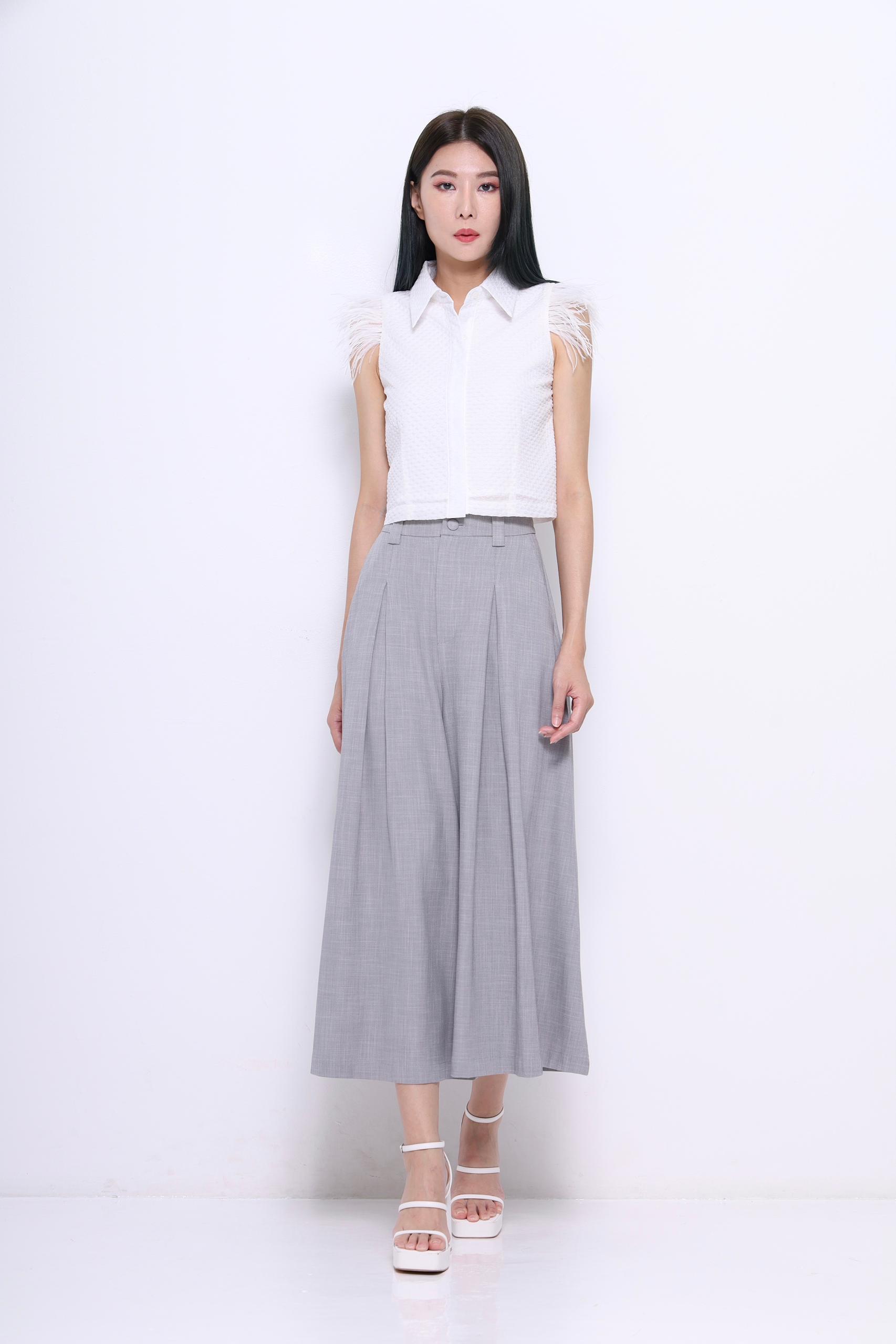 Crafted from lightweight, breathable suiting fabric, these pants feature a high-rise waist and sharp front pleats for a sleek, elongating effect. The wide-leg cut flows effortlessly, offering both comfort and a refined silhouette. Perfect for office wear, smart-casual outings, or elevated everyday looks.